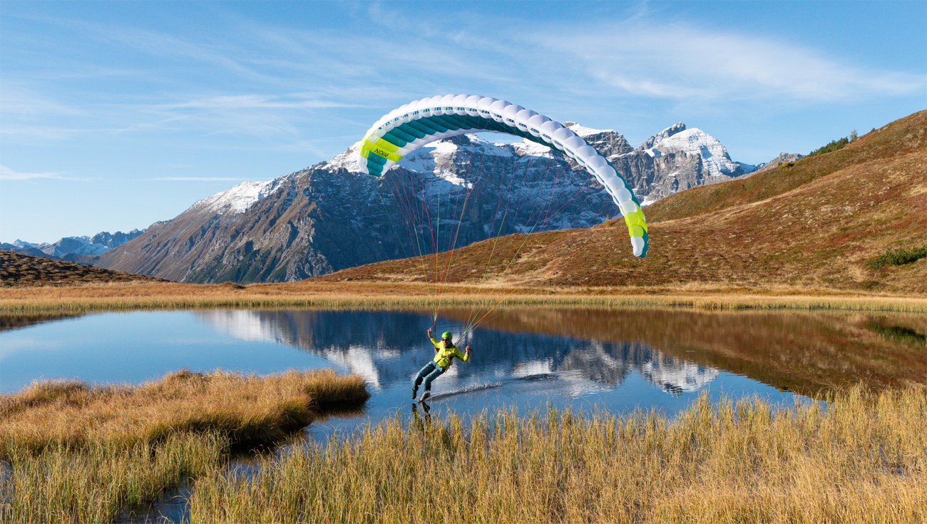Der DOUBLESKIN (EN/LTF A) kommt mit hoher passiver Sicherheit (Streckung ausgelegt: 4,4) und ist durch seine Wendigkeit, hervorragende Gleitleistung und freudige Thermikanzeige ideal um aus einem „Abgleiter“ einen Rundflug zu machen. Kurze Steuerwege, hohe Agilität und beherrschbare Reaktionen zeichnen den DOUBLESKIN ebenso aus wie ein einfaches Bodenhandling dank kurzen ummantelten Leinen. Ideal für steinige alpine Startplätze!