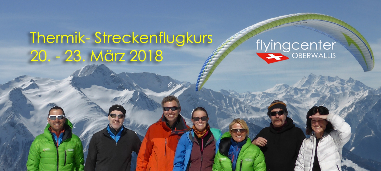Vom 20. bis 23. März 2018 fand ein Thermik- Streckenflugkurs vom Flyingcenter Oberwallis statt. Nach intensivem und lehrreichem Theorieteil erfüllten die Teilnehmer souverän die interessanten Flugaufgaben. Mit teils noch junger Flugkarriere, haben die Piloten an diesem Thermik- Streckenflugseminar einiges dazugelernt und viel an Wissen, Erfahrung und Erinnerungen an unvergessliche Panoramaflüge mit nach Hause genommen. Allen wünschen wir für die Zukunft viele schöne Flüge und immer happy landing.