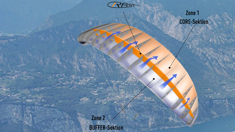 Mit der Neuentwicklung "RAST" (RAM AIR SECTION TECHNOLOGY)) setzt SWING neue Massstäbe. Mit dem Rast (Schottwandsystem) wird das Startverhalten, die Stabilität, die Leistung in turbulenter Luft und die dadurch resultierende Sicherheit enorm verbessert.