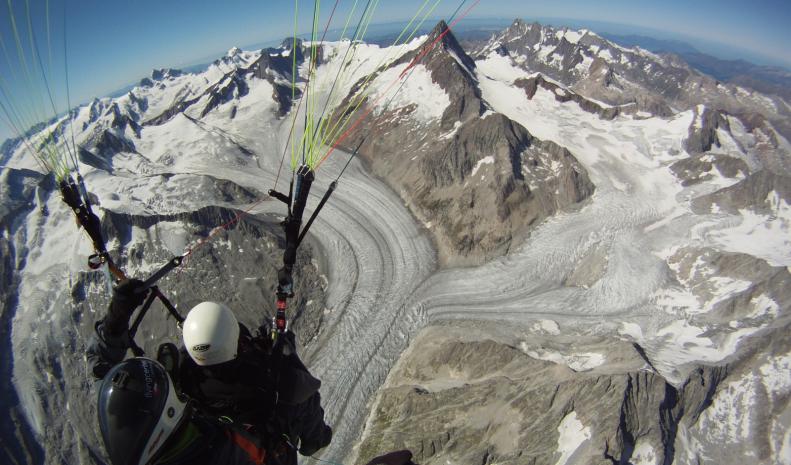 Ein paar Schritte laufen, abheben und die Fiescheralp, das Aletschgebiet mit Aletschgletscher, Fieschergletscher und Jungfrauregion (UNESCO-Weltnaturerbe) aus einer traumhaften Perspektive erleben und geniessen. Die Eindrücke die man dabei erlebt, sind unbeschreiblich. Wenn man mit einem erfahrenen brevetierten Passagierpiloten in die Luft abhebt, dort wie ein Vogel leise schwebend die Aussicht geniesst und sanft wieder auf der Erde landet, hat man den Traum vom Fliegen als faszinierendes Erlebnis gespürt.